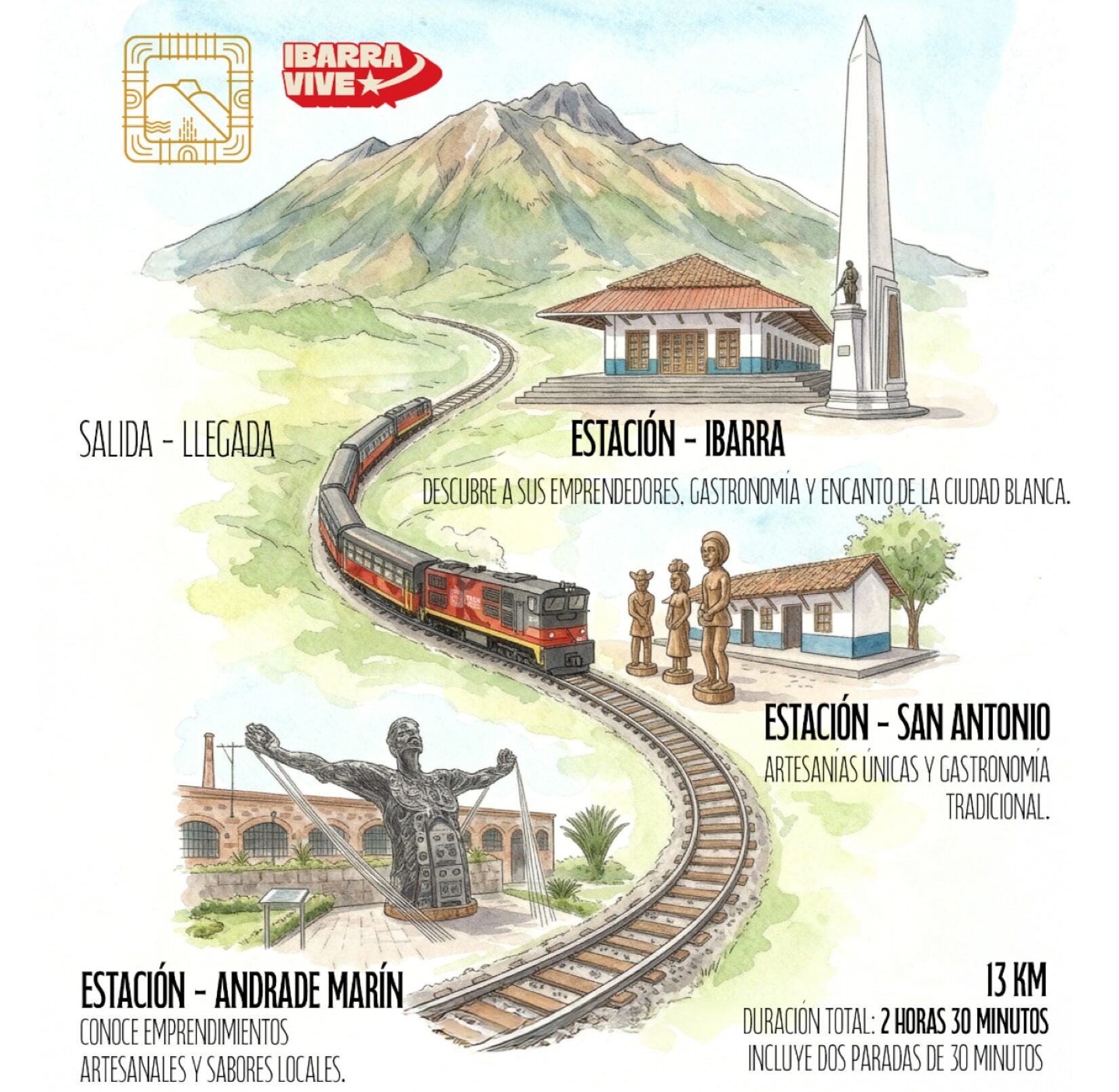 Durante las 2 horas y 50 minutos de travesía, cada parada de 40 minutos es una ventana a la esencia de nuestra tierra.